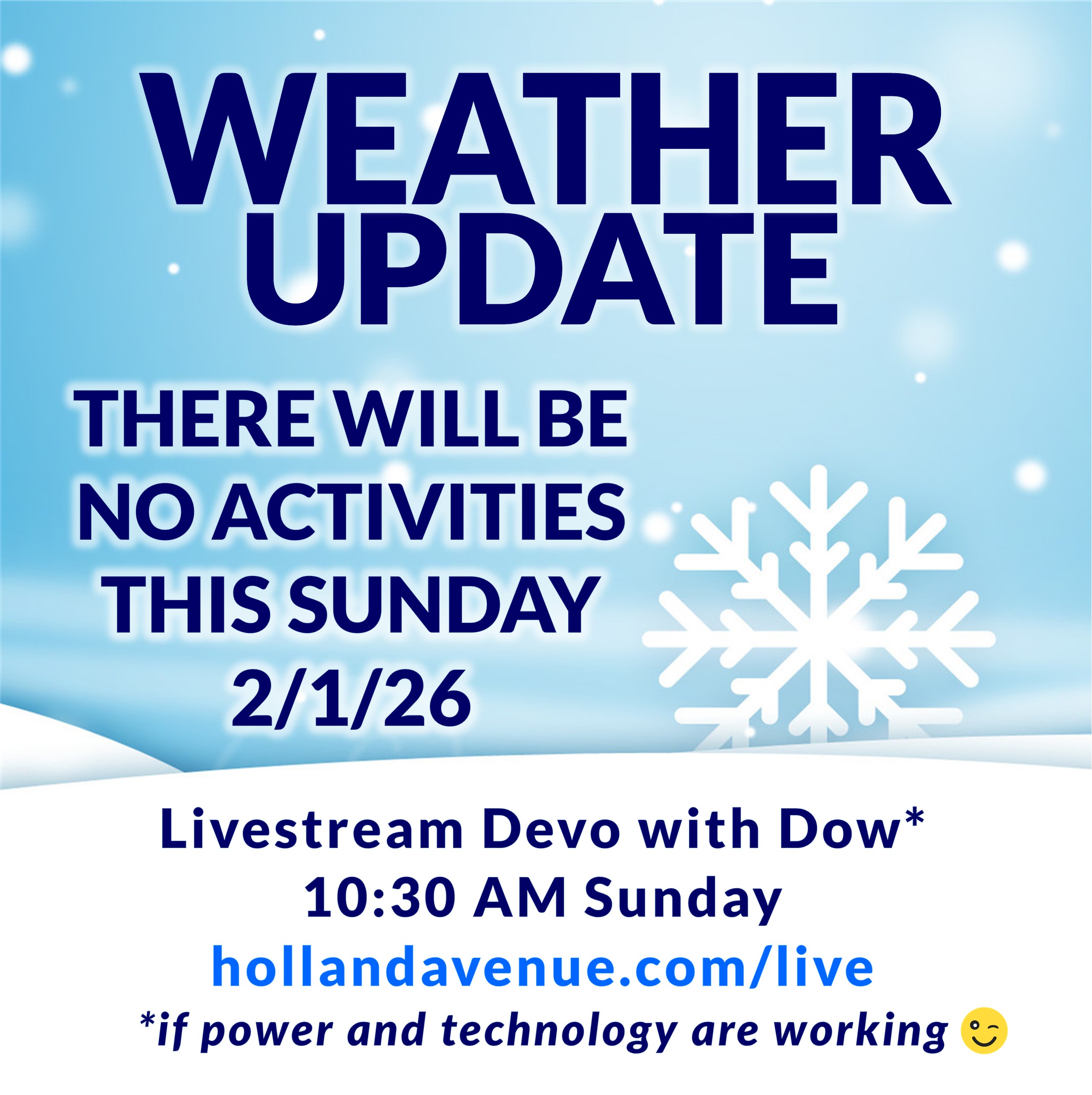 Inclement weather updates for church activities can be found on the social media links below...
